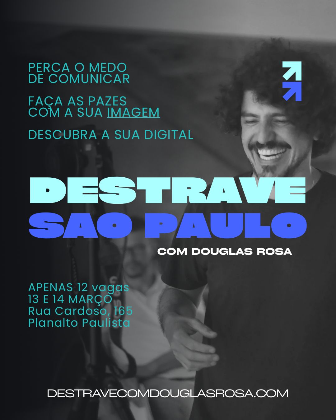 Destrave com Douglas Rosa é uma imersão prática que transforma sua comunicação, desbloqueia sua expressão e te prepara para falar com confiança e autenticidade.